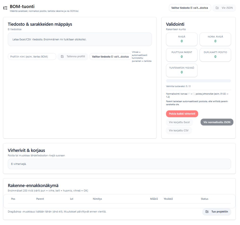 Modern software for industrial workflows: BOM import and repair, supplier pricing integration, and fast cost estimation with WPS logic.